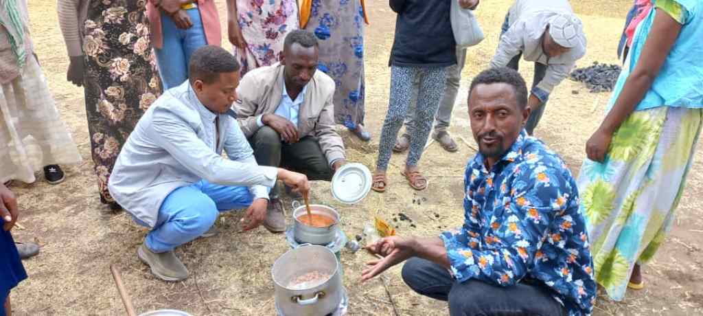 RAISE-FS project jointly with Melkassa Agricultural Research Center (MARC) organized a cooking demonstration and training on gender sensitization and NSA on 2nd December 2022 at Sire Woreda in Ibseta Huduga kebele in the Farmer’s Training Center. The training focused on theoretical concepts and practical applications. The theoretical training focused on key nutrition concepts, gender and nutrition sensitive agriculture. The practical session focused on preparation and demonstration of different recipes. The training was begun by the opening and welcoming speech made by Mr. Tsegaye Dinku, woreda agricultural office head. Then, brief introduction of the RAISE FS project and objectives of the event of the day was also made by Dr. Tesfaye Letta, a team leader for Oromia Liaison office of the RAISE-FS project.