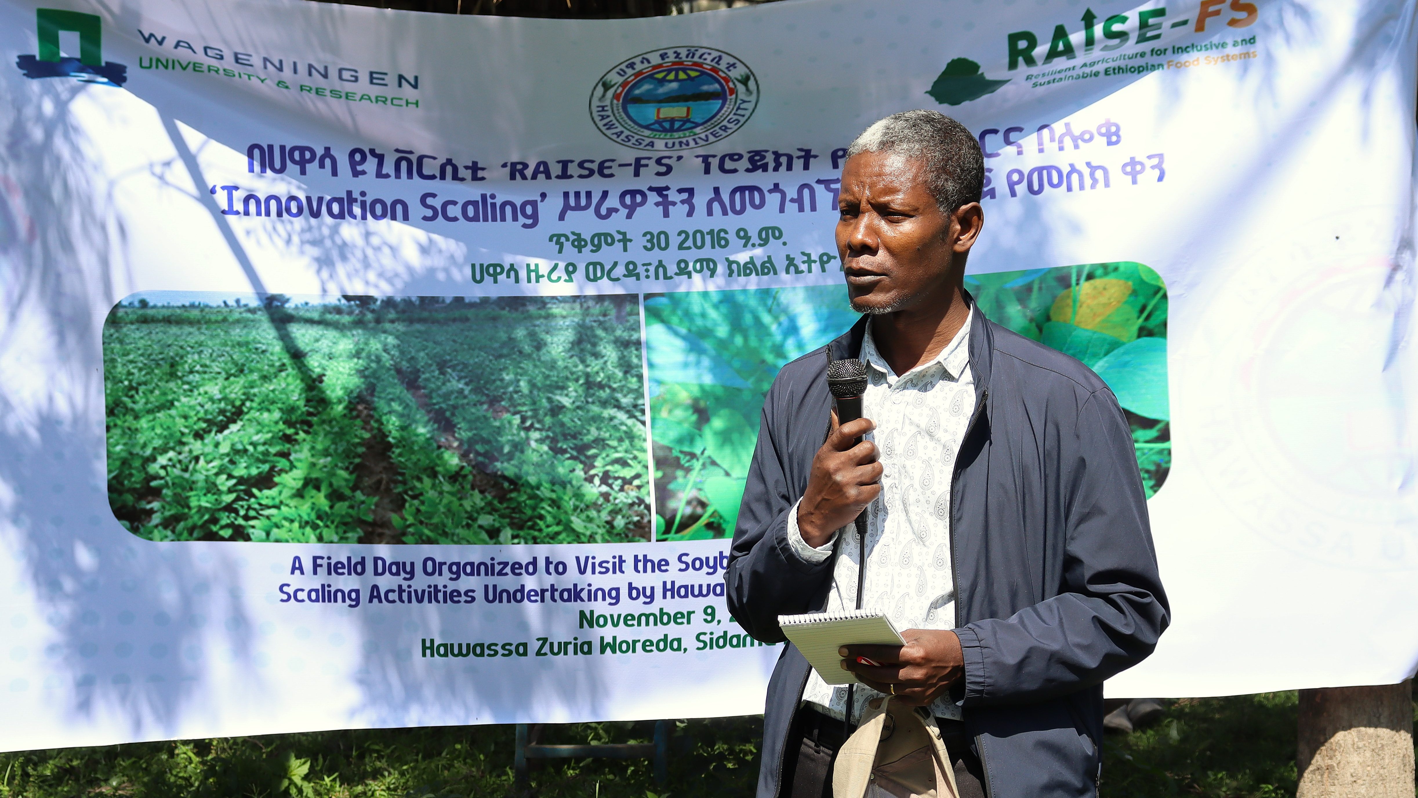 Hawassa University, in partnership with the SWR Ethiopia RAISE-FS project, organized a field visit to Hawassa Zuria woreda with the aim of promoting the soybean innovation tested and validated by the university on a wider scale. The event also provided a platform for key stakeholders to engage in discussions on strategic issues on the scaling and sustainability of soybean innovation.