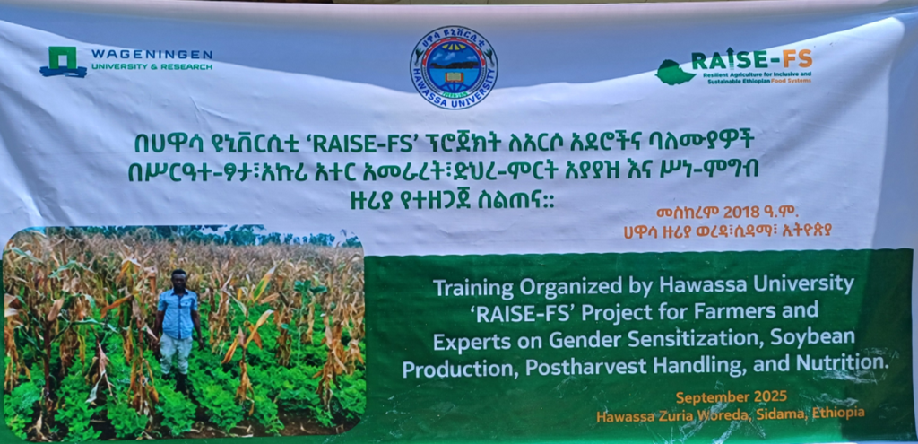 Southern Ethiopia’s Sidama region is fast becoming a hub for soybean production and marketing, offering immense potential for economic growth and improved livelihoods. In line with this promising development, the SWR Ethiopia RAISE-FS project, in partnership with Hawassa University, has been spearheading efforts to scale up soybean innovations over the past four years. A key component of these efforts has been a series of training programs aimed at addressing critical knowledge and skills gaps in soybean production, post-harvest handling, nutrition, and gender inclusivity.