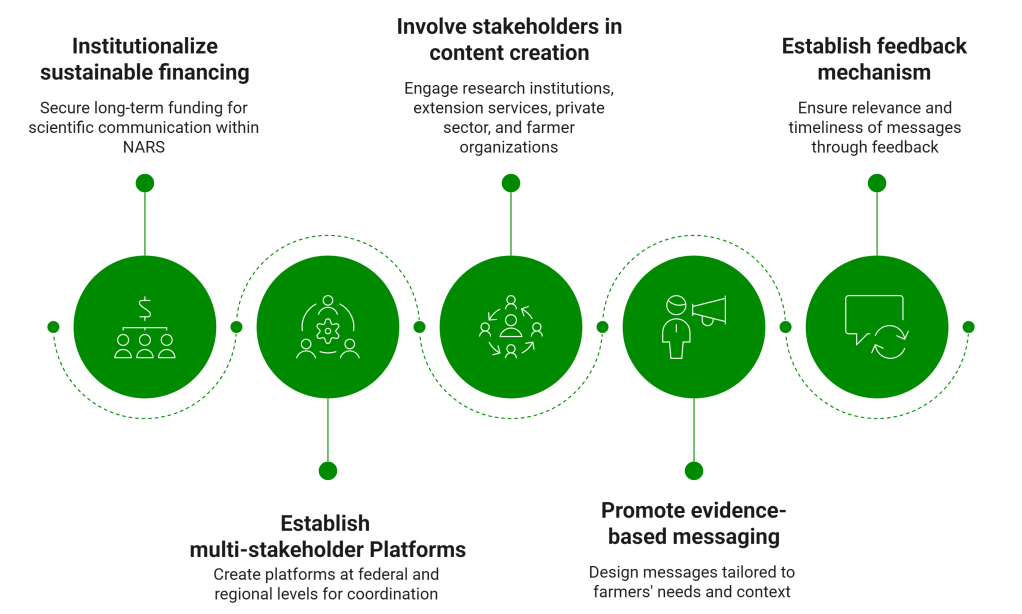 The study identified several systemic challenges related to the governance and dissemination of agricultural messages. These include limited engagement of key stakeholders in setting media agendas, weak coordination among actors, and the absence of structured platforms for aligning efforts. As a result, many agricultural messages are developed using a top-down approach and are insufficiently tailored to the diverse needs of farmers. In addition, there is a lack of robust feedback mechanisms to capture and incorporate input from target audiences.