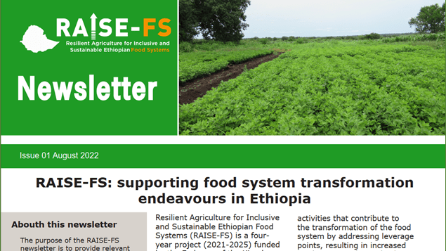 The RAISE-FS newsletter's goal is to provide relevant information on latest developments and current problems issues in the Ethiopian food system as well as project support activities. The first issue outlines the major activities that took place between January and July 2022. A scoping study conducted by RAISE-FS to map gender and youth focused initiatives in the agriculture … Continue reading RAISE-FS Newsletter August 2022 issue published